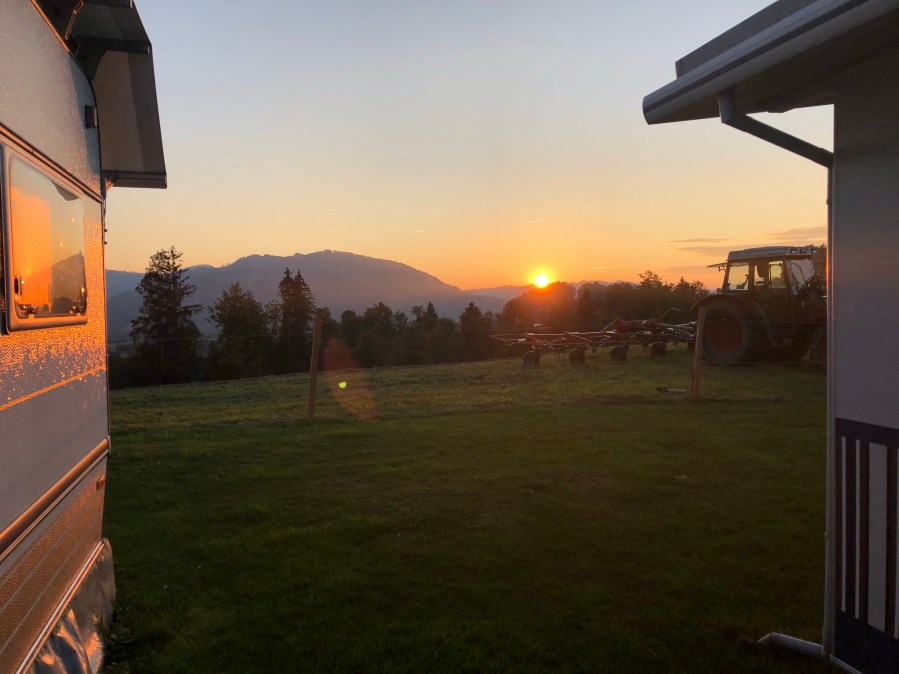 Um 18:00 bin ich glücklich am Camping angekommen une konnte mit einem Linseneintopf den Abend ausklingen lassen und dabei einen wunderbaren Sonnenuntergang miterleben.