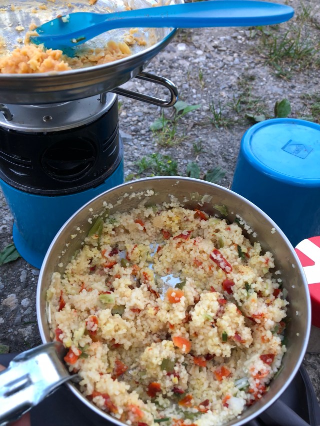 Mal sehen wie es morgen weiter geht, jetzt gibt es erstamals eine Portion Couscous mit Gemüse und Rührei.