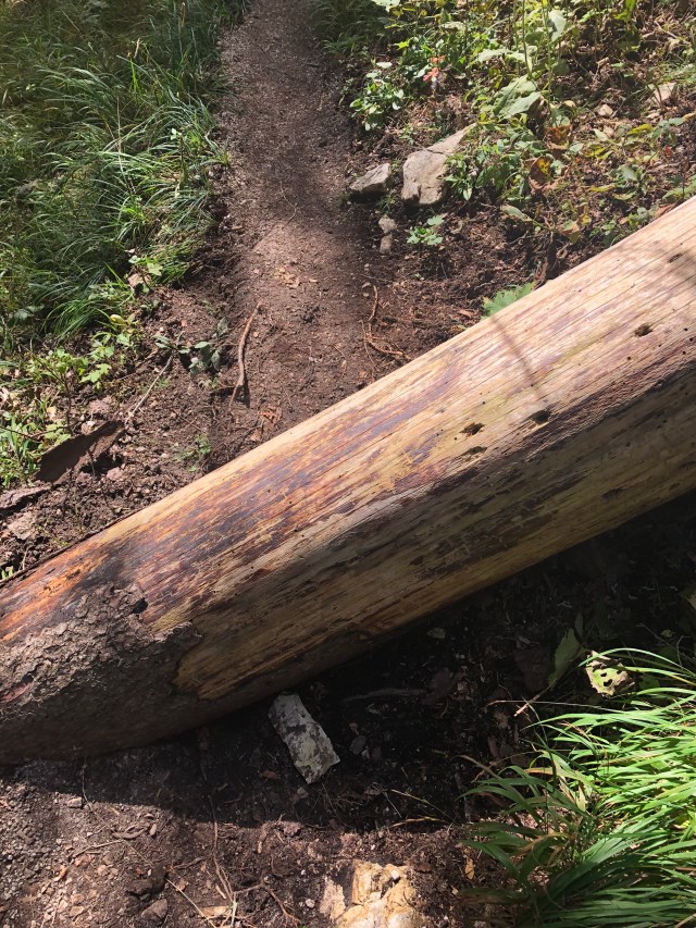 Am Anfang war da nur ein wenig Gebüsch, dass auf den Weg lampe, aber mit der Zeit musste man über ausgetrocknete Flussbetten balancieren, sich hohe Steine hochhiefen und diese niemalsendenen Baumstämme umzwingen. Einmal unten durch, dann wieder drüber klettern. Man muss sagen, das wäre ja grundsätzlich machbar, aber vergesst nich, ich war schon seit 3h (reine Laufzeit) unterwegs und hatte immernoch mein riesen Rucksack. Und auf der einen Seite vom Weg, da ging es steil hinab. Also ein Fehltritt und du stürzt…